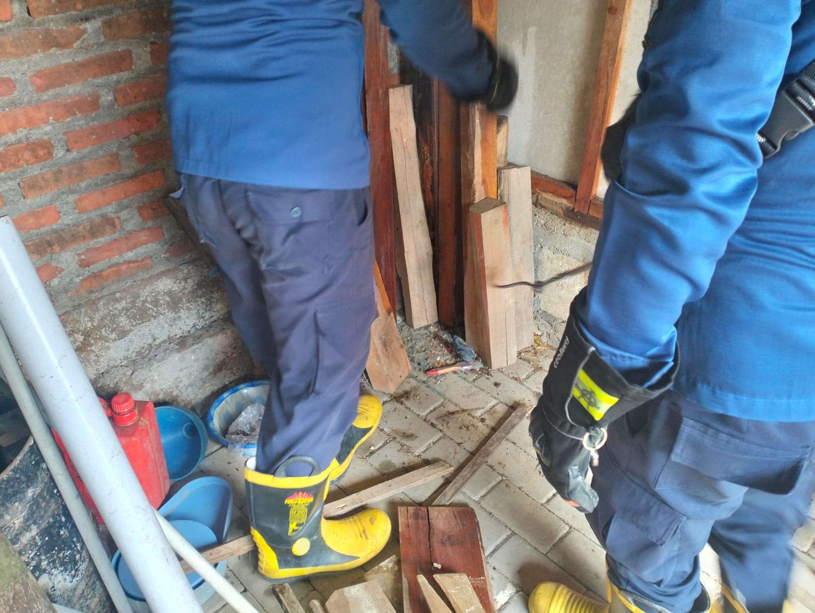 Laporan berasal dari pemilik rumah berinisial S (42th), seorang aparatur sipil negara, yang menemukan keberadaan ular di lingkungan rumahnya. Menindaklanjuti laporan tersebut, petugas Damkarmat Pos Temayang segera menuju lokasi untuk melakukan penyisiran dan evakuasi guna mencegah potensi bahaya bagi penghuni rumah dan lingkungan sekitar.