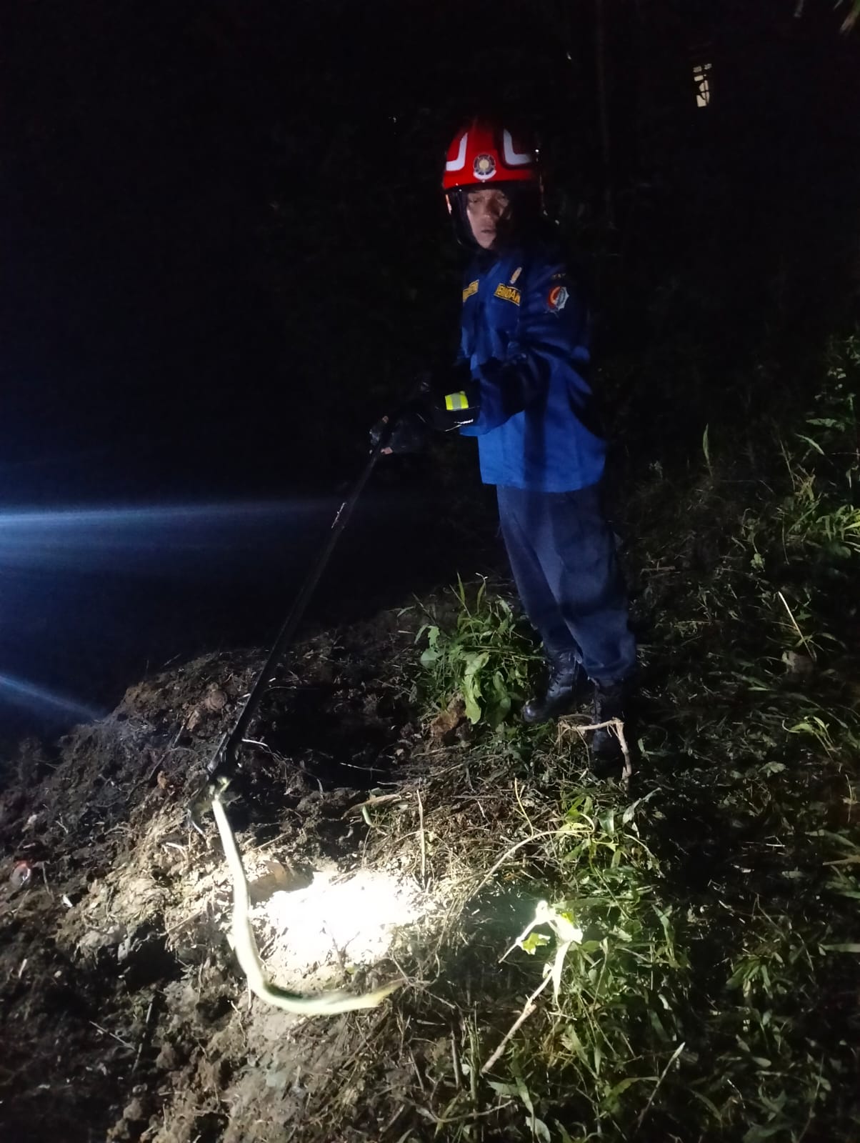 BOJONEGORO – Dinas Pemadam Kebakaran dan Penyelamatan Kabupaten Bojonegoro melalui Pos Sumberrejo Regu III melaksanakan kegiatan evakuasi ular berbisa yang ditemukan di wilayah Desa Pesen, Kecamatan Kanor.