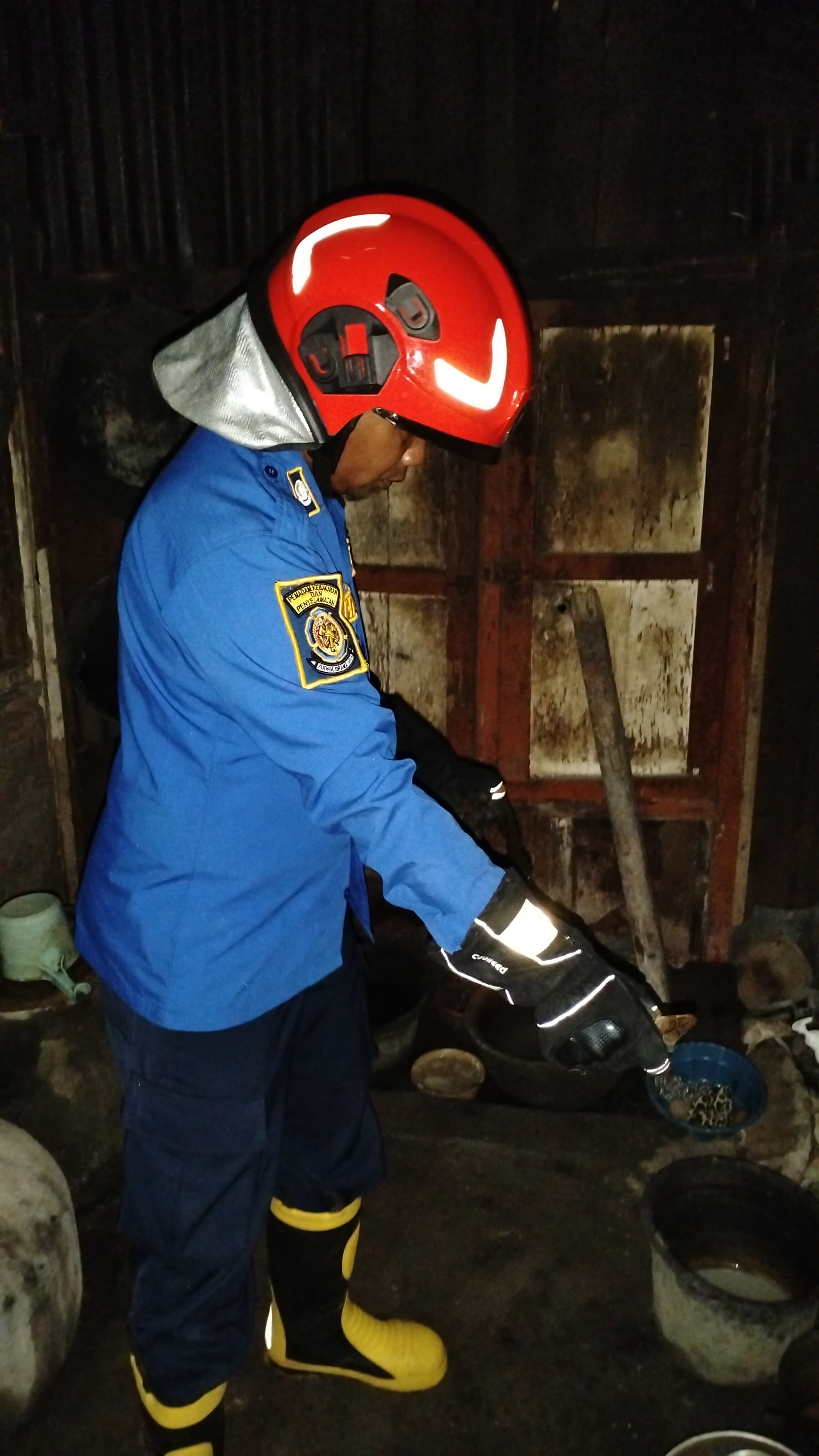 Menindaklanjuti laporan tersebut, petugas Pos Ngasem segera menuju lokasi dengan mengerahkan satu unit fire truck dan tiga personel. Setibanya di lokasi, tim langsung melakukan evakuasi menggunakan metode penjepit ular sesuai standar operasional prosedur.
