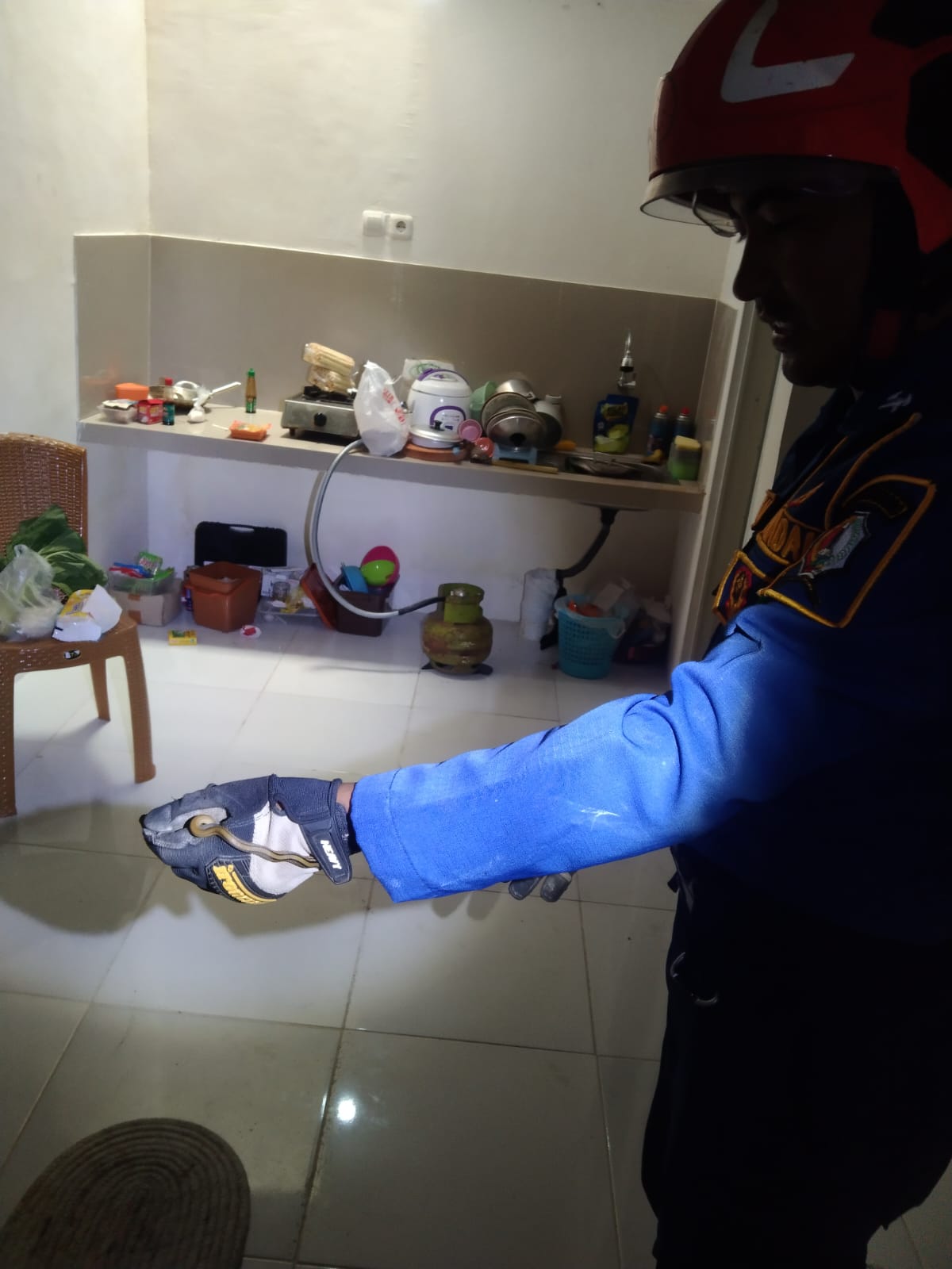Laporan kejadian disampaikan oleh F (39th), seorang warga setempat yang mendapati seekor ular berada di area permukiman. Keberadaan satwa tersebut dikhawatirkan dapat membahayakan penghuni rumah maupun masyarakat sekitar.