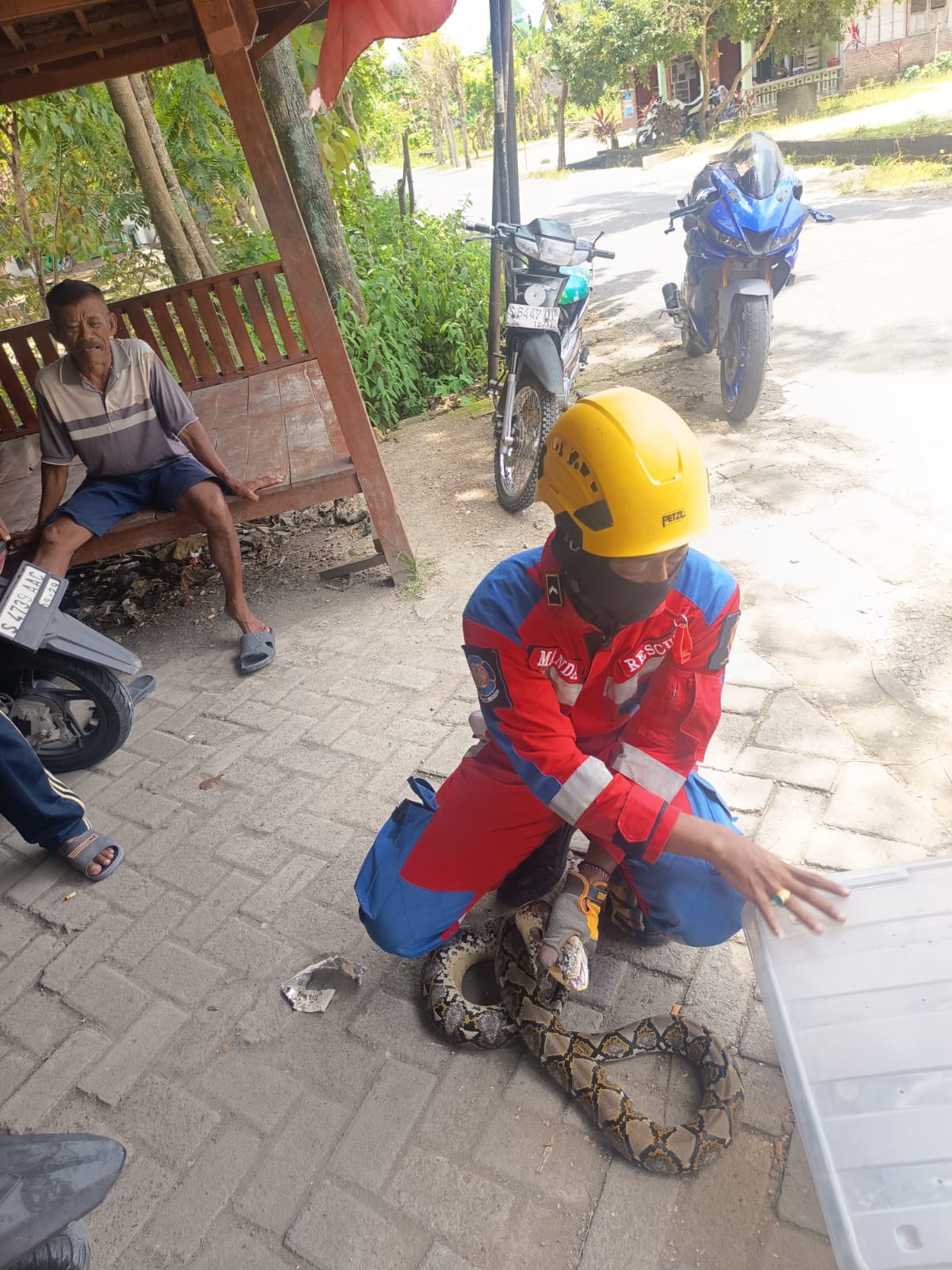 Laporan kejadian disampaikan oleh warga berinisial B (62th) yang mengetahui adanya ular berukuran cukup besar di sekitar halaman warung. Keberadaan satwa tersebut menimbulkan kekhawatiran bagi pemilik warung maupun masyarakat sekitar sehingga dilaporkan kepada petugas Damkarmat.