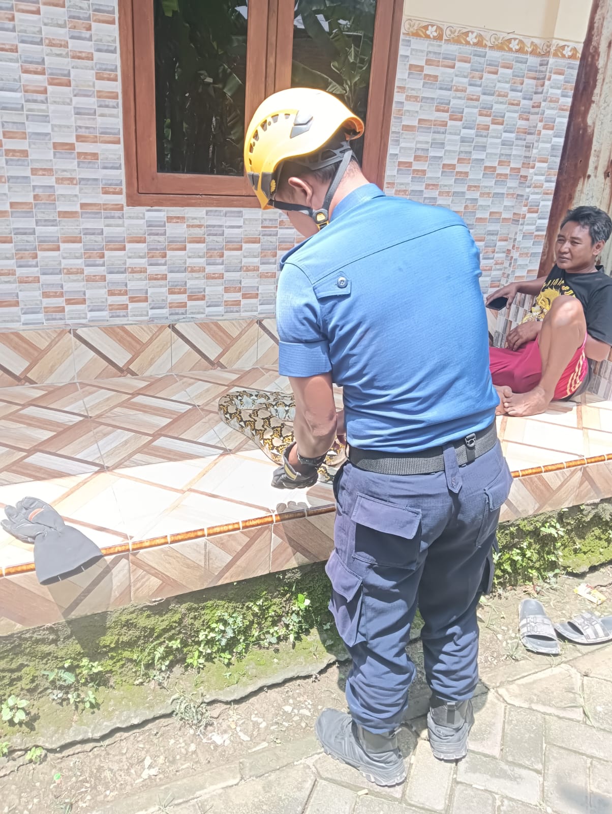 Bojonegoro – Dinas Pemadam Kebakaran dan Penyelamatan Kabupaten Bojonegoro melalui Pos Kota Regu 1 melaksanakan evakuasi seekor ular sanca di wilayah Kelurahan Ngrowo, Kecamatan Bojonegoro, Kamis (23/4/2026).