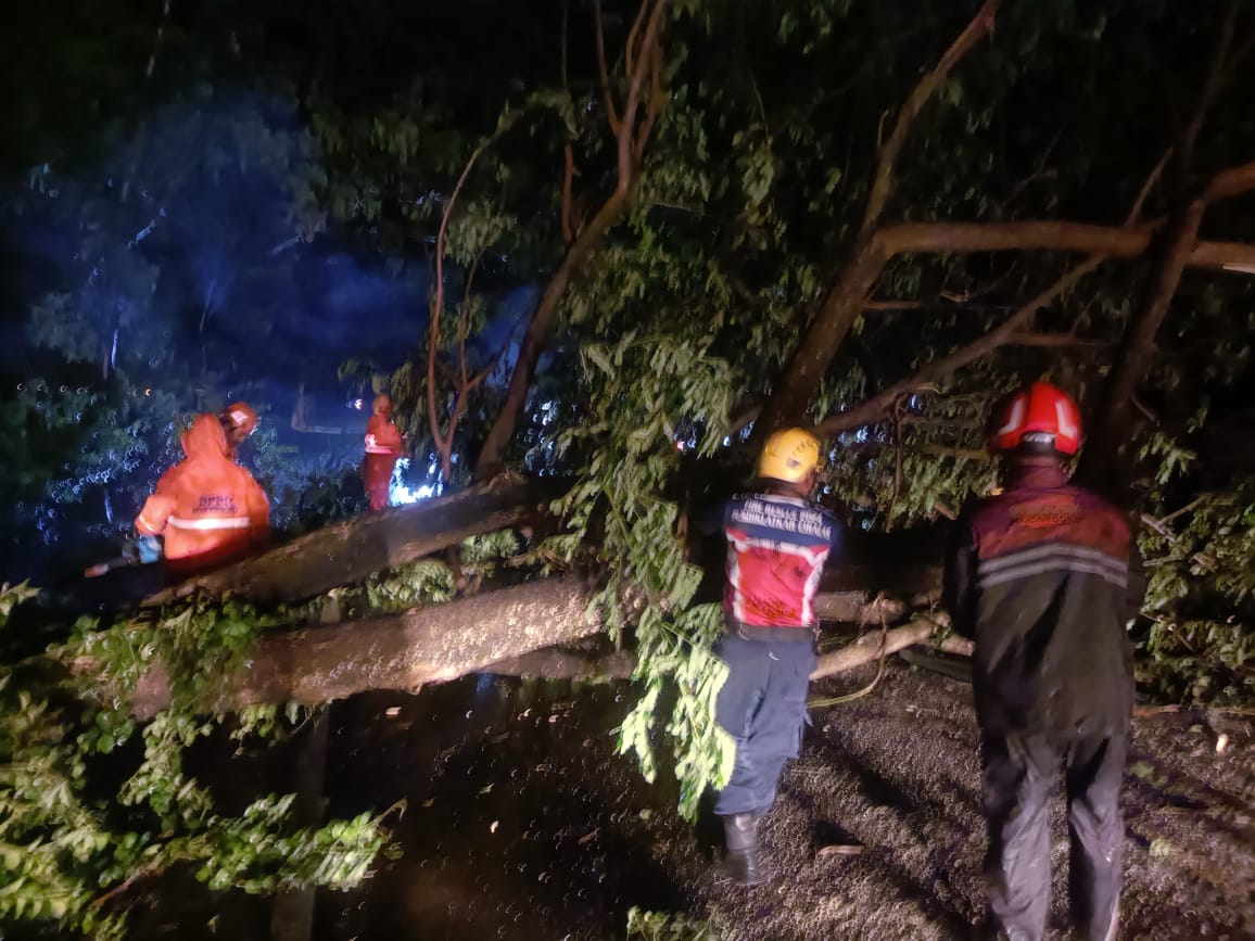 BOJONEGORO — Dinas Pemadam Kebakaran dan Penyelamatan (Damkarmat) Kabupaten Bojonegoro Pos Kota mengevakuasi tujuh titik pohon trembesi yang tumbang di sepanjang jalur...