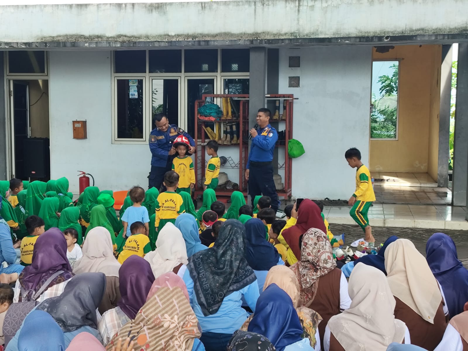 BOJONEGORO — Dinas Pemadam Kebakaran dan Penyelamatan (Damkarmat) Kabupaten Bojonegoro Pos Baureno menyelenggarakan kegiatan edukasi kebencanaan bagi puluhan siswa RA Al-Falah, Desa...