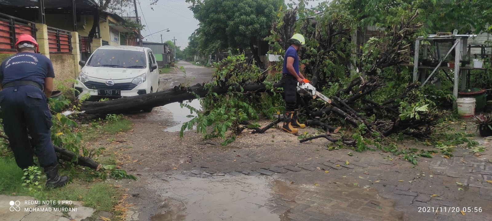 Menindaklanjuti laporan warga Desa Sukorejo, Gg. Pondok Pinang, tentang adanya pohon tumbang yang nyaris menimpa mobil warga, 3 Petugas Jaga Dinas Pemadam...